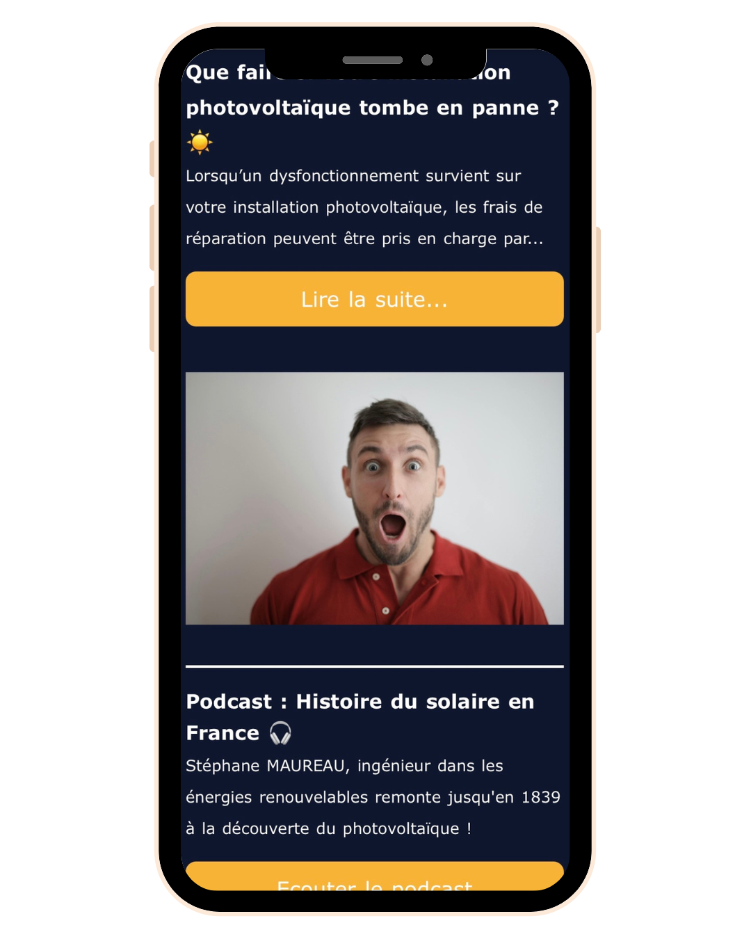 Smartphone qui affiche une extrait de newsletter de l'entreprise Sol'Air Energie