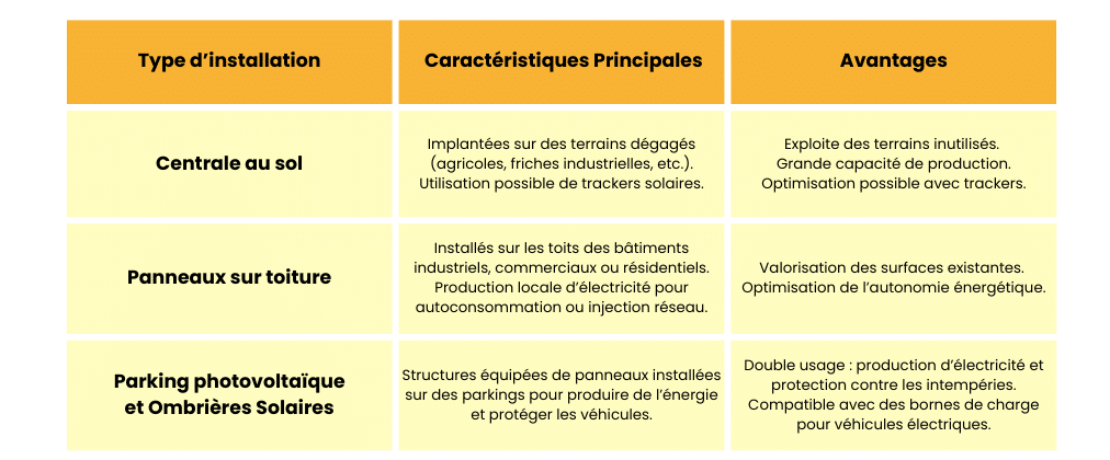Chez Sol’Air Energie, Expert Local en Installations Photovoltaïques, nous vous accompagnons pour trouver la solution la plus adaptée aux besoins de votre entreprise :