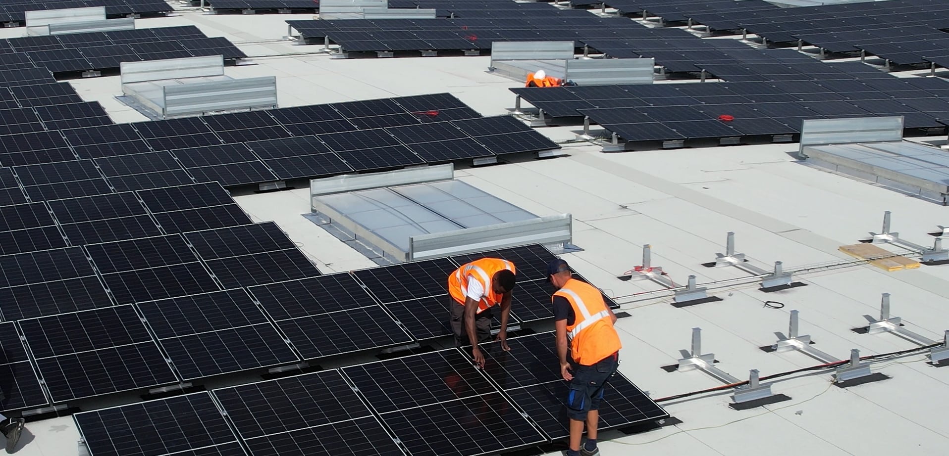 Nos techniciens sont ultra productifs et minutieux sur ce chantier d’envergure : 839 kWc de panneaux photovoltaïques posés avec précision et expertise sur le toit d’un site industriel engagé dans la transition énergétique.